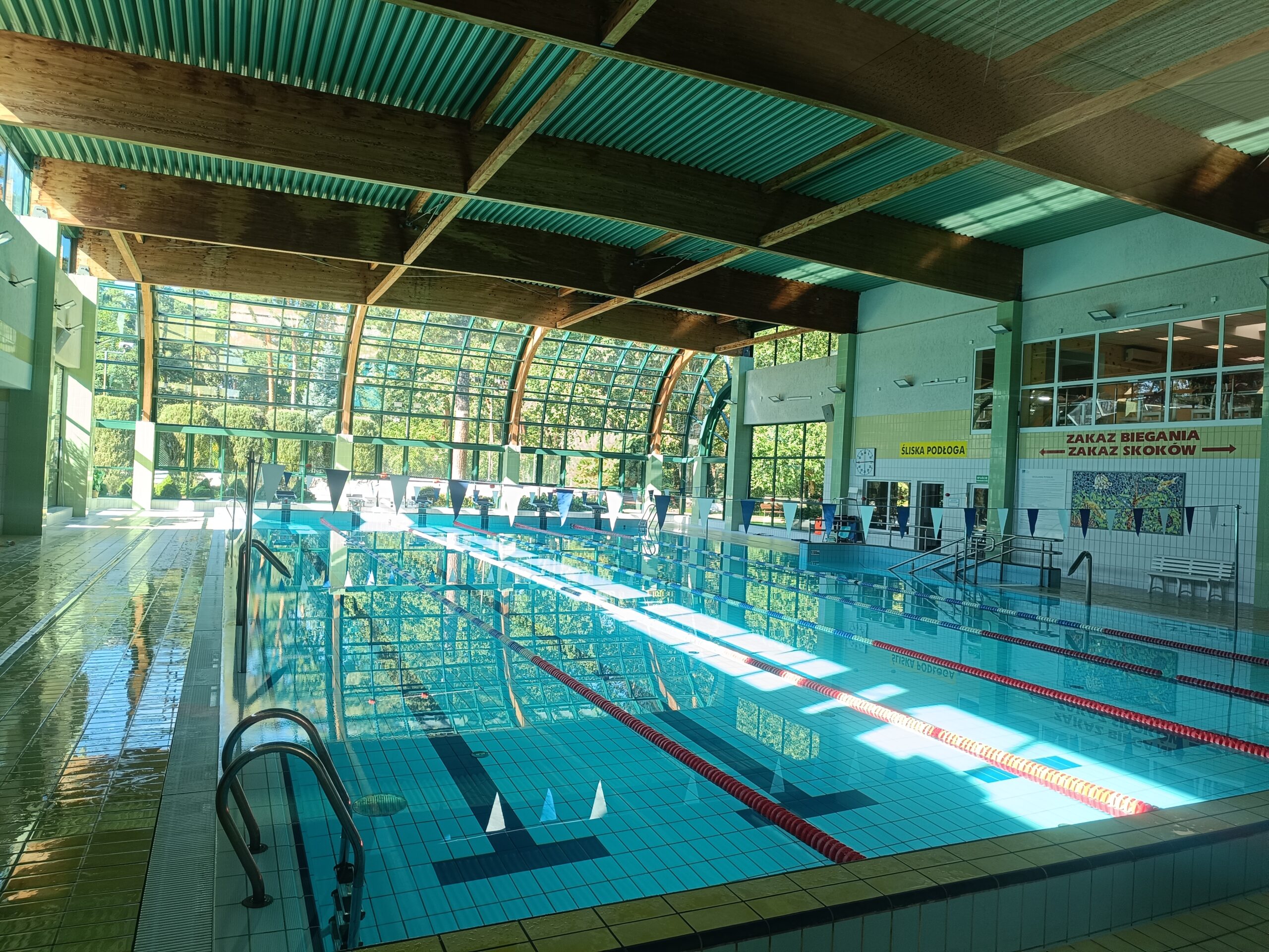 Basen ma wymiary 12 × 25 m i głębokość od 1,2 do 1,8 m, wyposażony jest w bicze wodne. Woda jest ozonowana, a jej temperatura wynosi 28°C.