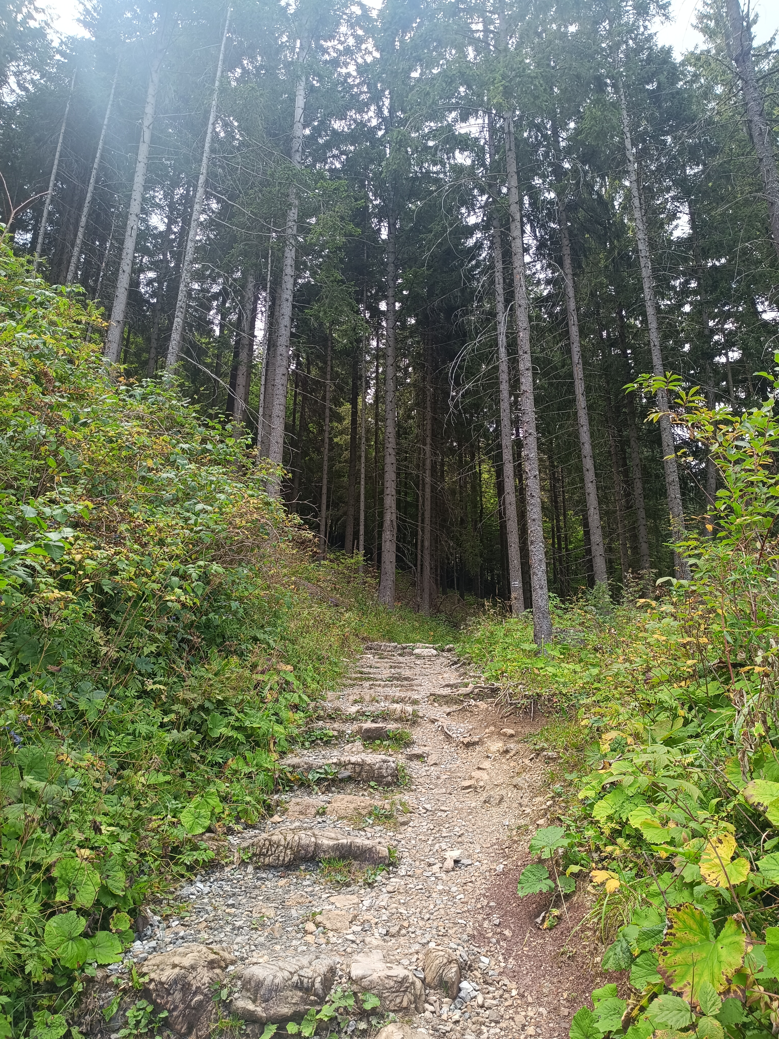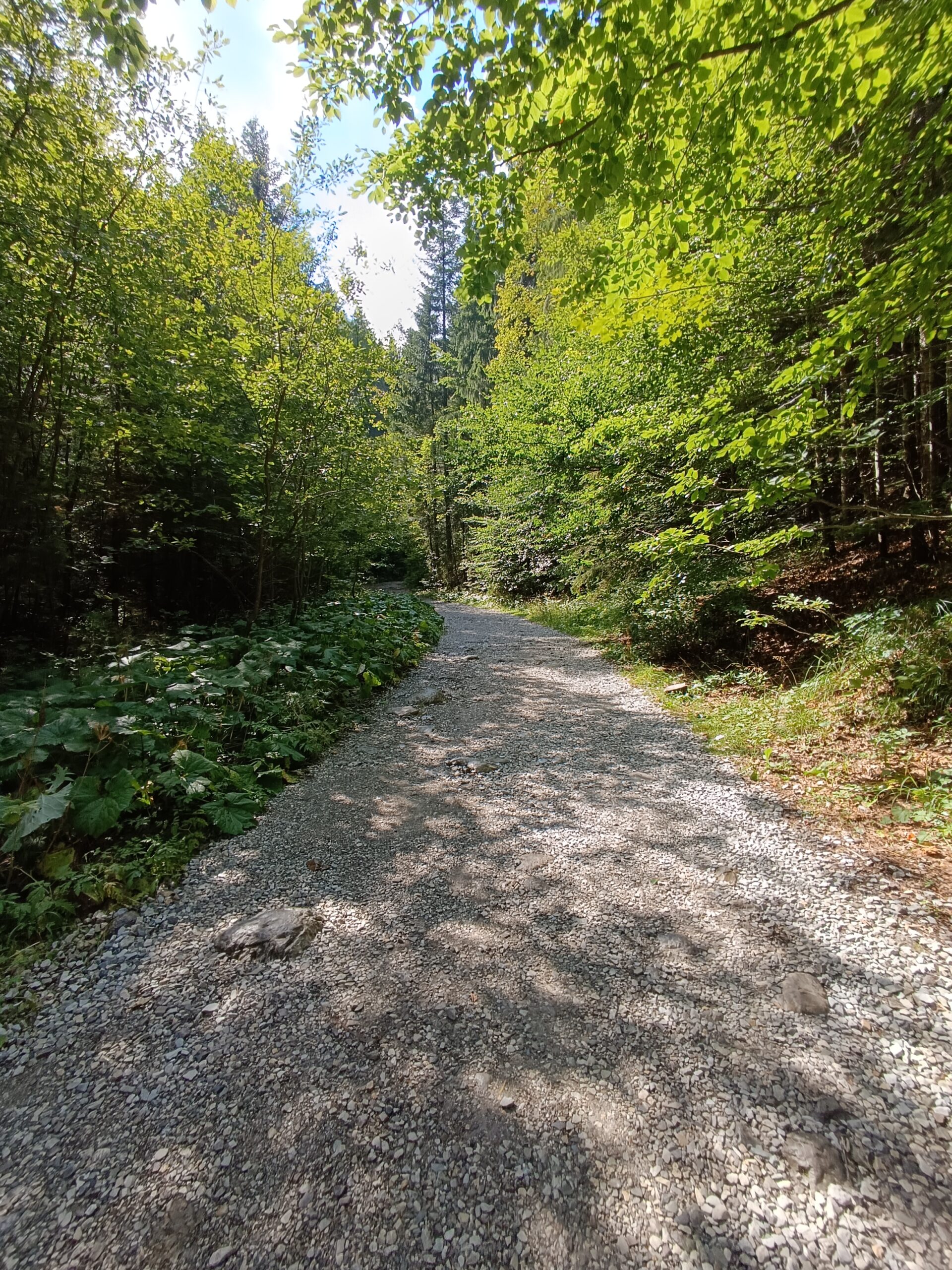 Trasa na całej długości doliny ma szeroką, szutrowa ścieżkę, prowadzi lasem i łagodnie pnie się do góry.