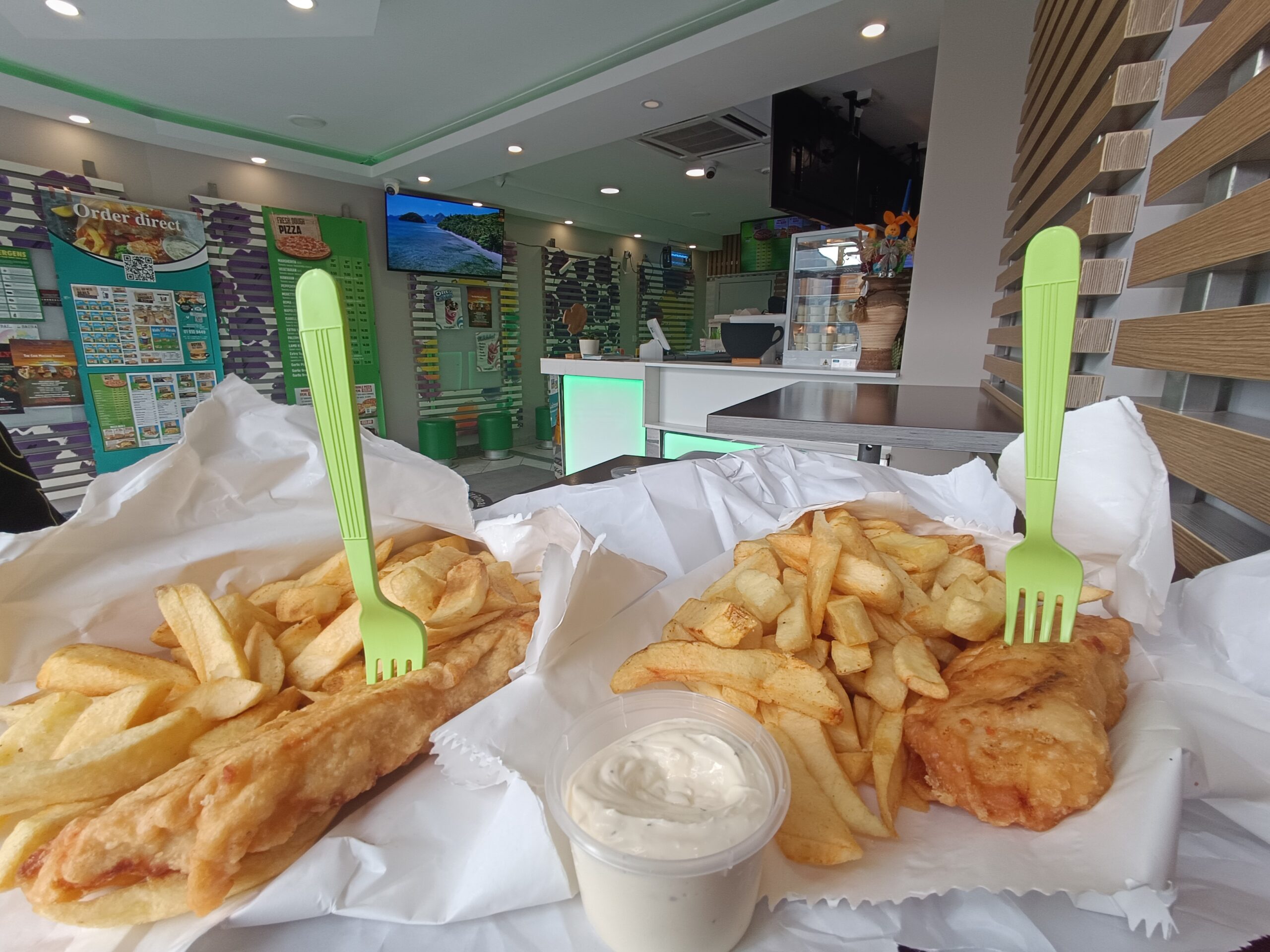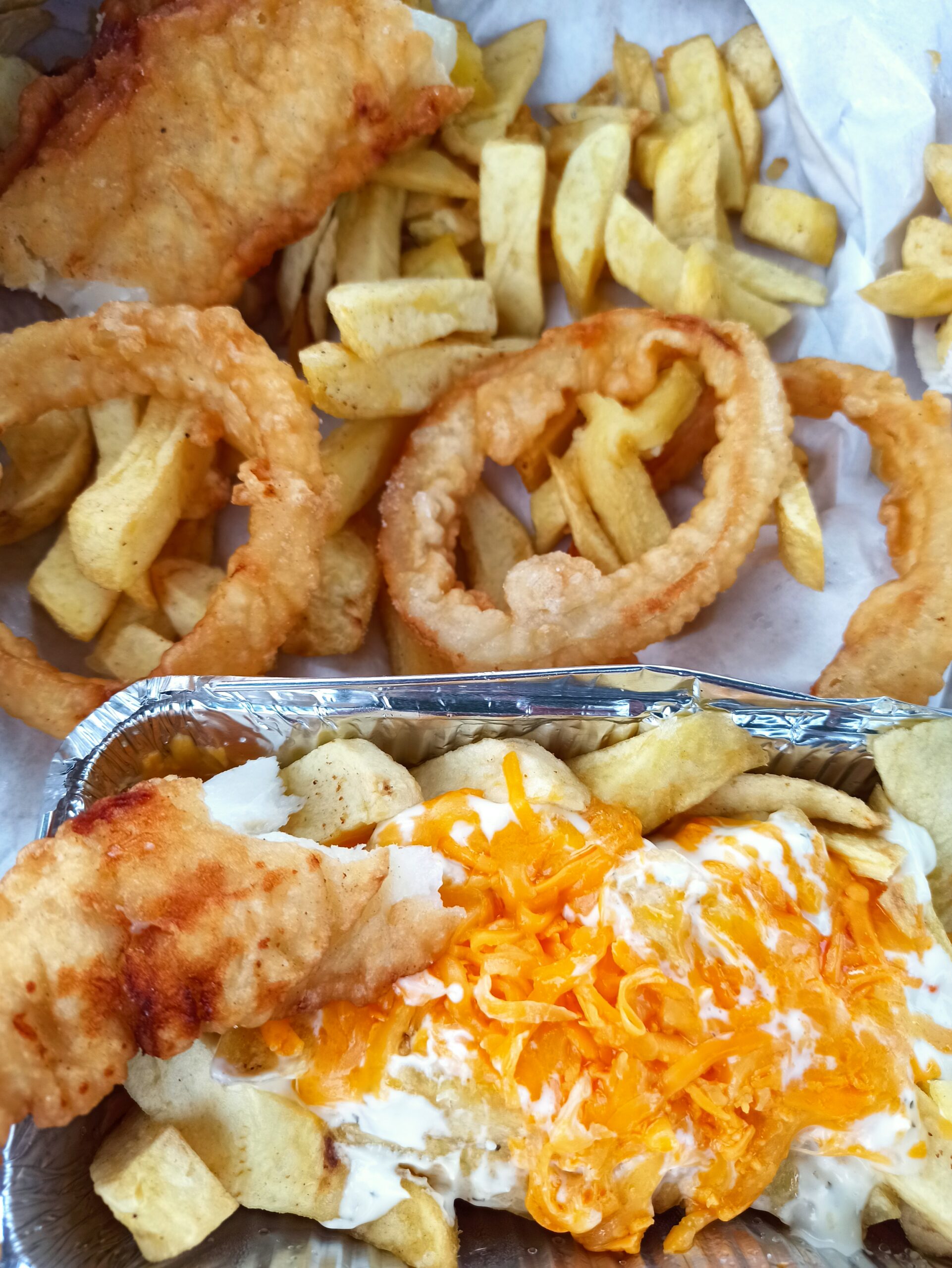 Fish and chips to danie składające się ze smażonej ryby w cieście lub bułce tartej oraz frytek lekko polanych sosem winegret.